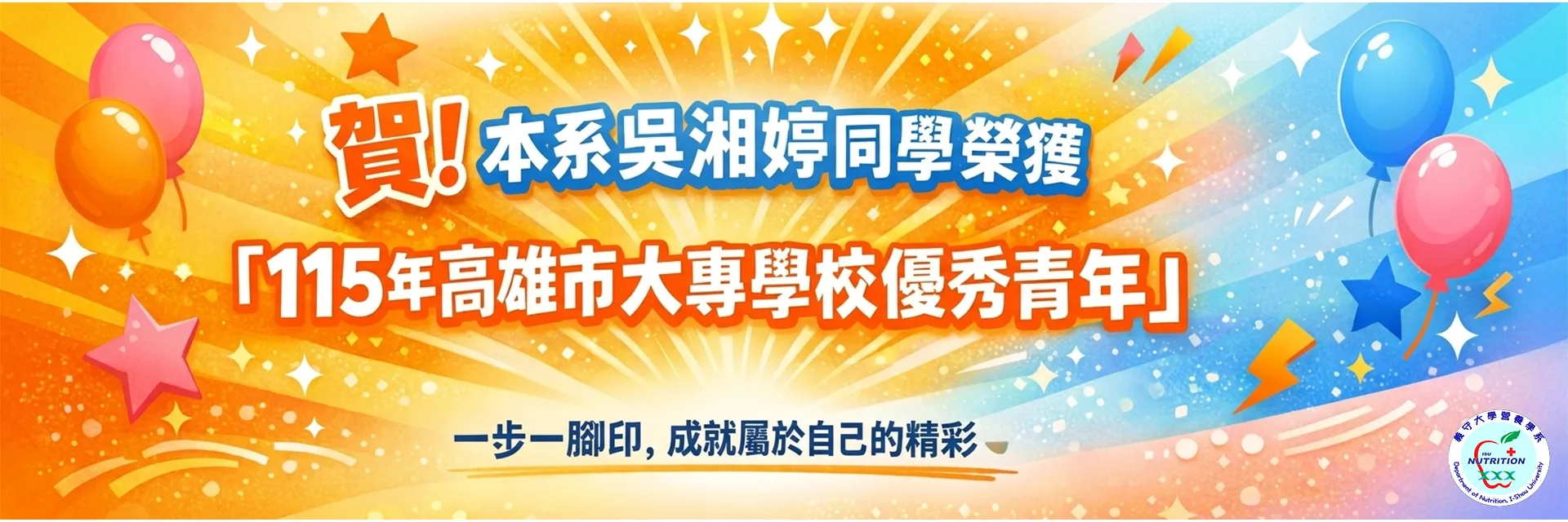 賀!本系吳湘婷同學當選義守大學115年大專優秀青年-縣市表揚代表